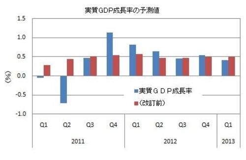 いつも活用しているESPフォーキャスト調査の新しい調査結果が、4月12日付けで公表された。今回は、東日本大震災の影響もあり、前回とは大きく異なる結果となっている。先ずは、実質成長率について、1月の結果との違いを確認する。 実質経済成長率は、2011…