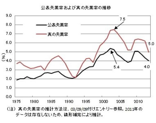 完全失業率によって雇用情勢を判断する場合、不況時に就業意欲を喪失し労働市場から退出する者が発生することで、完全失業率が低下し、雇用情勢の悪化を過小評価することがある。この効果 (就業意欲喪失効果)を補正し、完全失業率とは異なる方法で推計した…