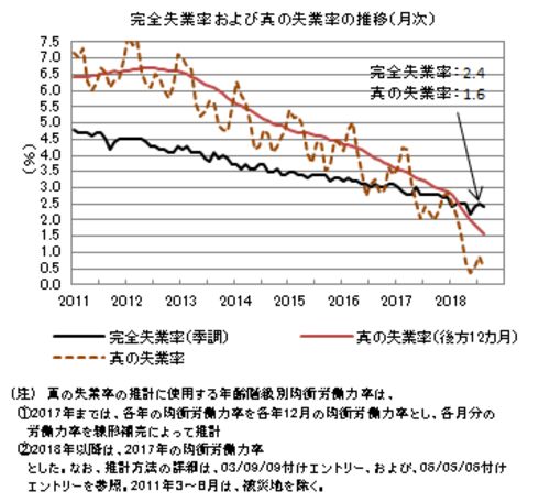 完全失業率によって雇用情勢を判断する場合、不況時に就業意欲を喪失し労働市場から退出する者が発生することで完全失業率が低下し、雇用情勢の悪化を過小評価することがある。この効果(就業意欲喪失効果)を補正し、完全失業率とは異なる方法で推計した「…
