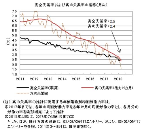 完全失業率によって雇用情勢を判断する場合、不況時に就業意欲を喪失し労働市場から退出する者が発生することで完全失業率が低下し、雇用情勢の悪化を過小評価することがある。この効果(就業意欲喪失効果)を補正し、完全失業率とは異なる方法で推計した「…